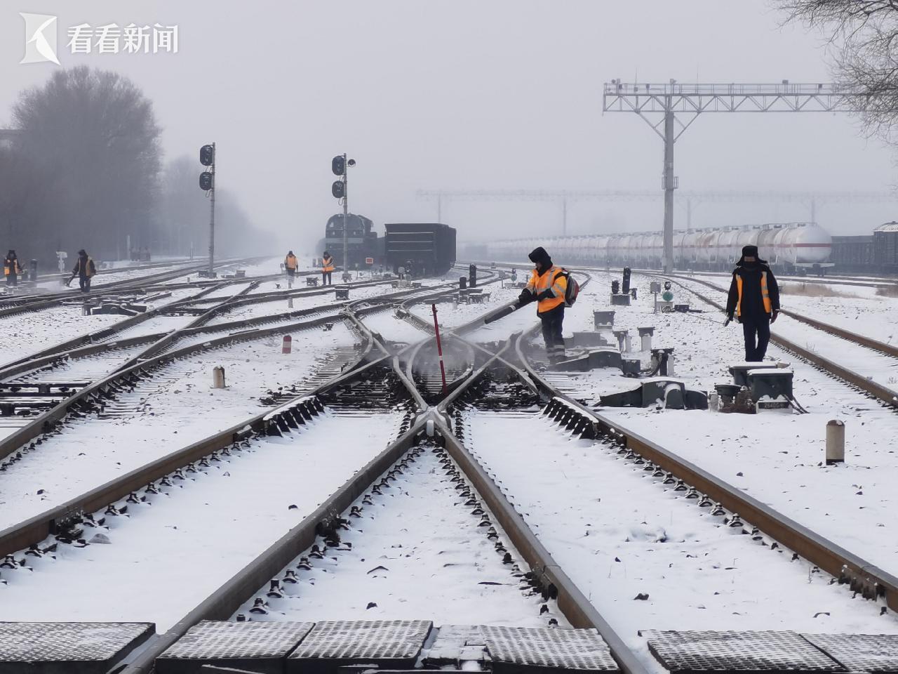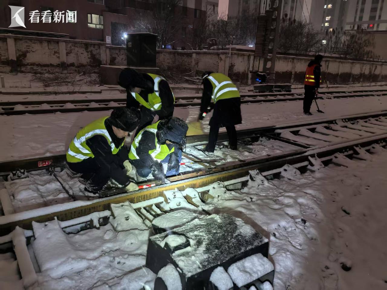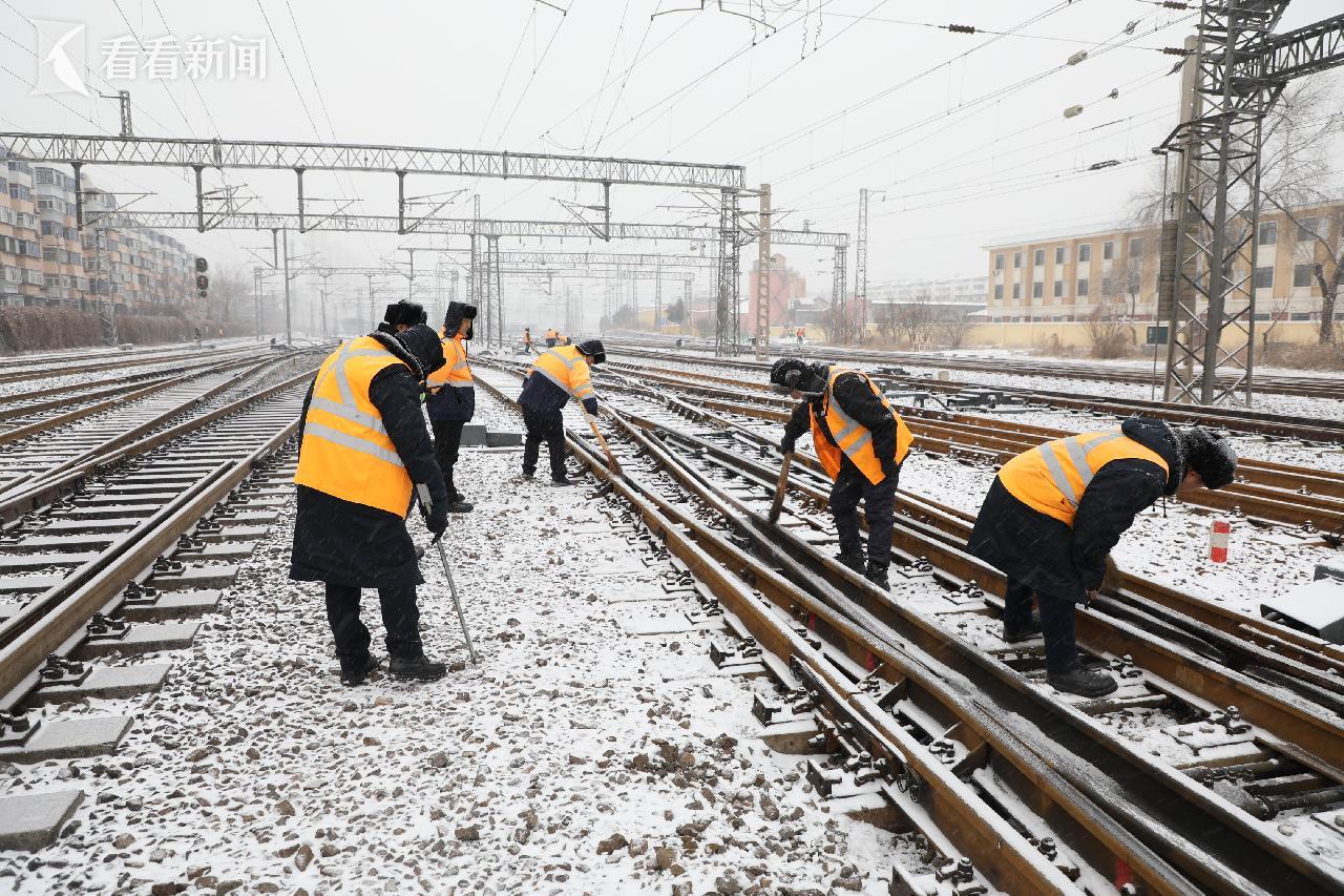 为确保旅客列车运行安全,铁路部门近2万名扫雪除冰人员做好除冰扫雪工作。采取人工巡线、机车添乘等方式对重点线路、桥梁、隧道等处所进行全方位检查,实时掌控岔区、曲线等关键地段情况,严防风雪天气对铁路行车设备设施造成影响。