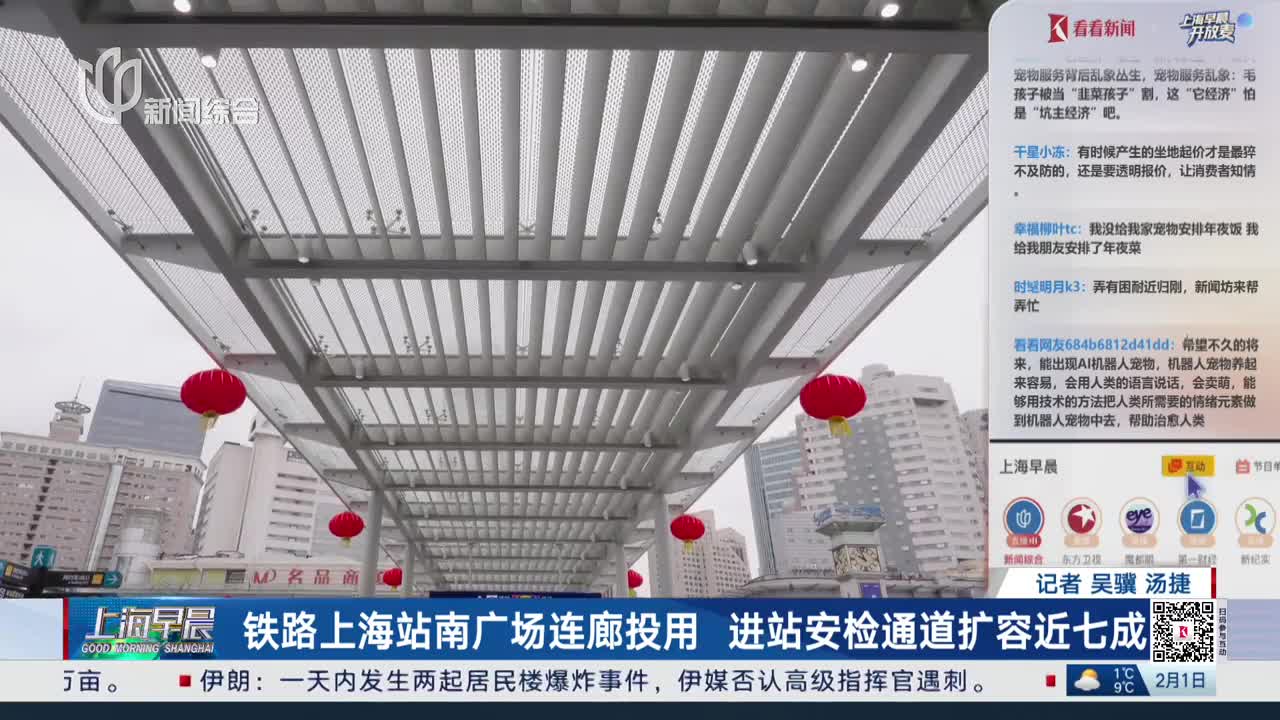 铁路上海站今天预计发送41.6万人次,今天清晨5点23分,铁路上海站2026春运首趟临客列车从上海虹桥站始发。目前,铁路上海站的情况如何?铁路部门有哪些举措来保障旅客们的回家路安全、顺利?在虹桥火车站的看看新闻Knews记者翟煜森介绍最新情况。