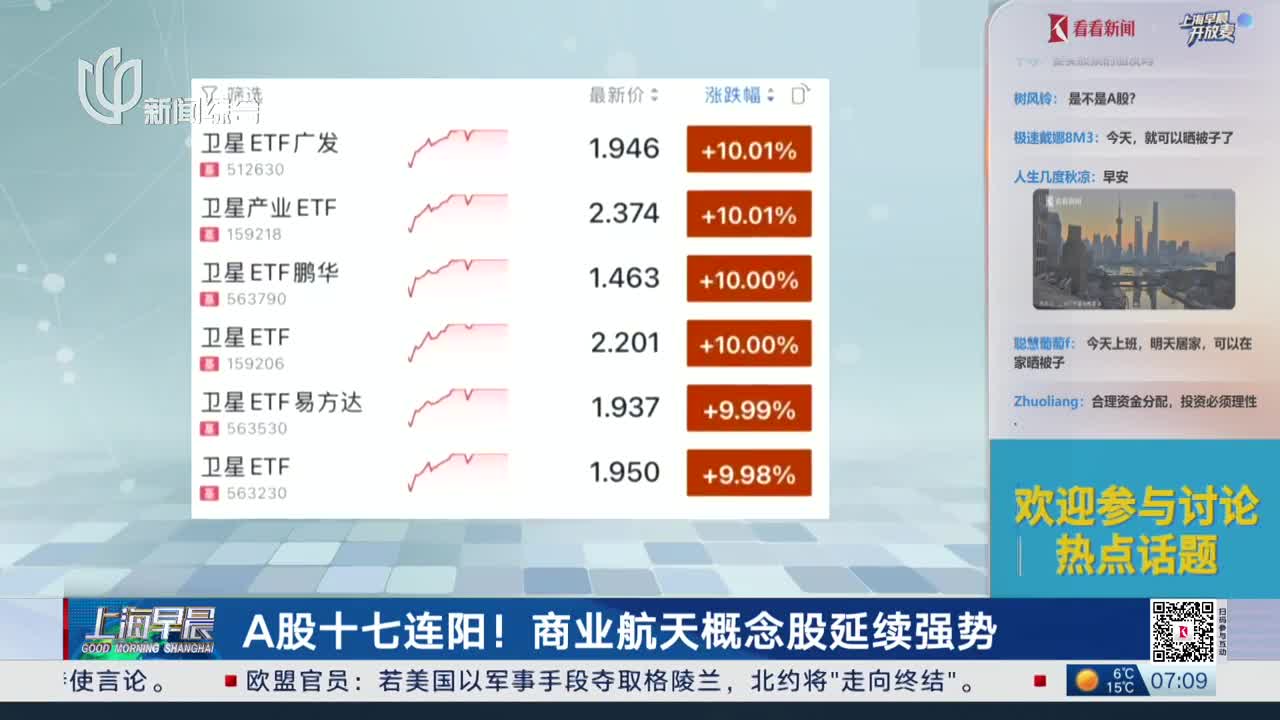 新的一周,A股市场延续强劲上涨势头。本周首个交易日,三大股指全线上扬,其中沪指实现“17连阳”,指数稳稳站上4100点,并刷新近十年新高。市场交投持续活跃,沪、京、深三市总成交额达3.64万亿元,创下历史新高。全市场超过4100只个股上涨,呈现普涨格局。