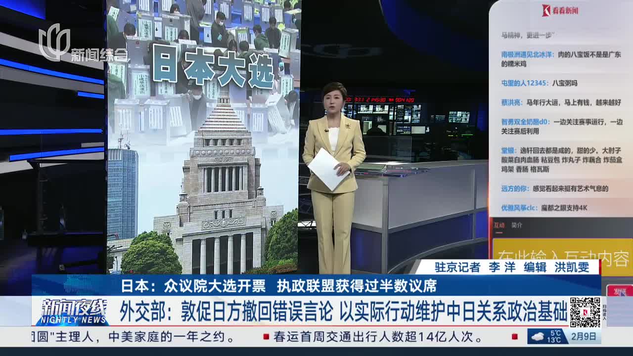 日本:众议院大选开票 执政联盟获得过半数议席 外交部:敦促日方撤回错误言论 以实际行动维护中日关系政治基础