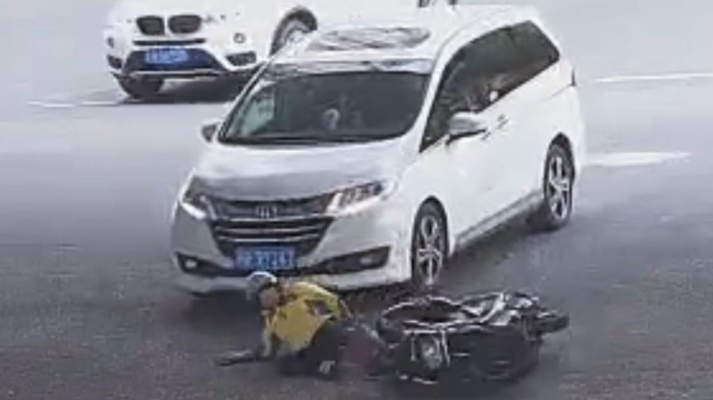 电动车闯红灯躲过公交没躲过出租车 交警:你全责