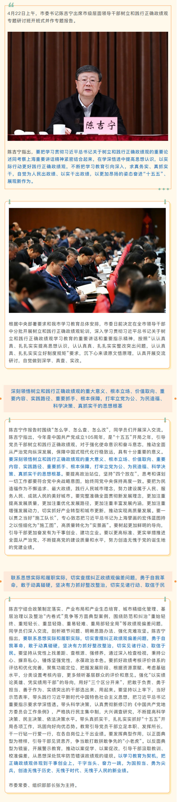 上海:在全市领导干部中分批开展树立和践行正确政绩观轮训 自觉做到深学、真查、实改