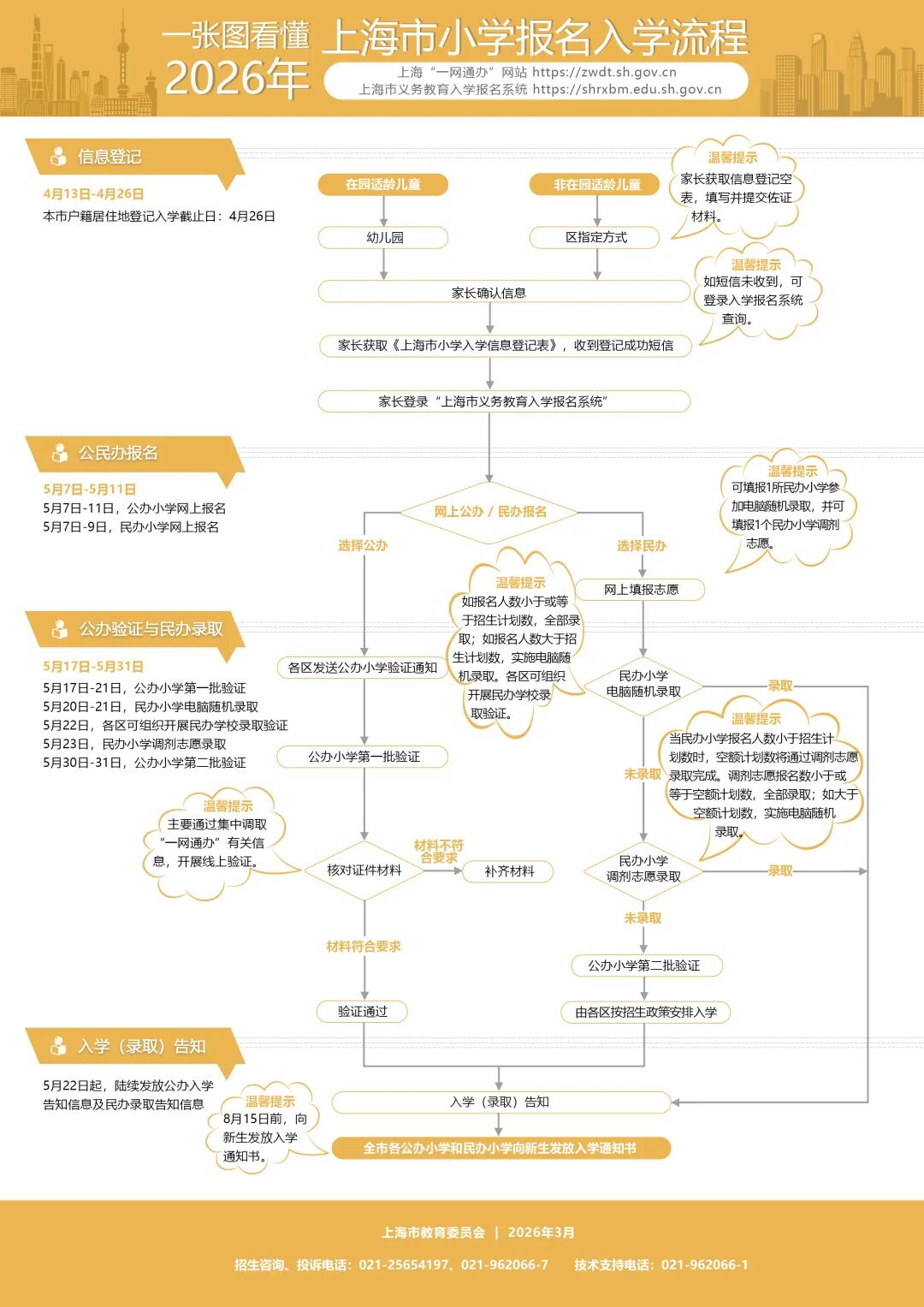 4月7日,各区将公布义务教育学校招生工作实施方案和招生细则。4月13日前,各区将组织幼儿园大班家长会和小学毕业班家长会,具体解读今年义务教育招生政策。