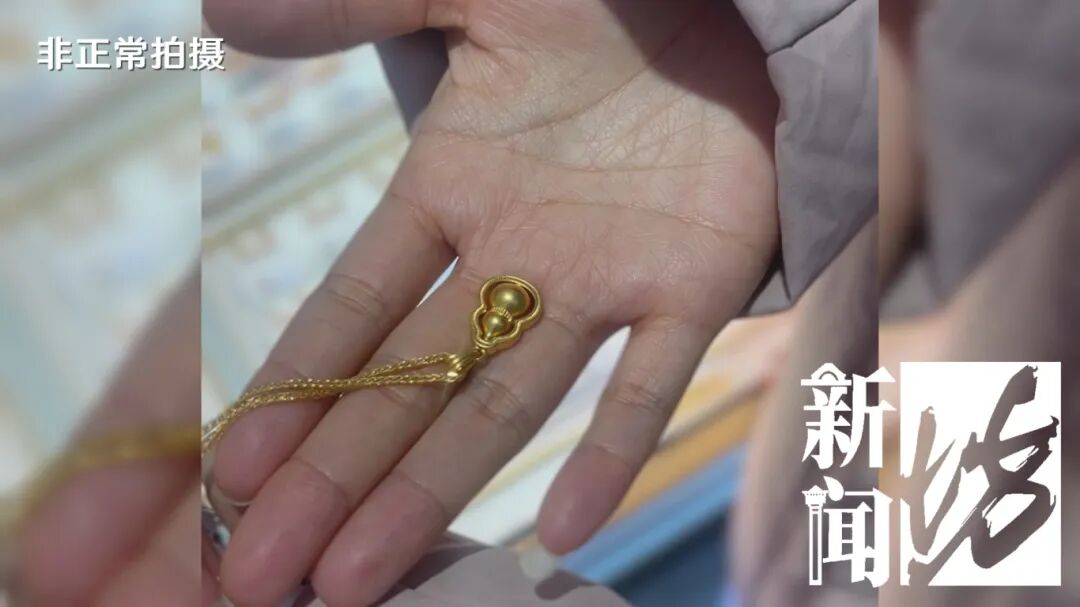 随后,店员便以划算为由,顺势给坊记推荐了多款该类商品,比如这款葫芦吊坠,店员从柜台拿出后,坊记才看到被压在首饰盒底部的价签,上面只标注价格5000元,没有克重信息。