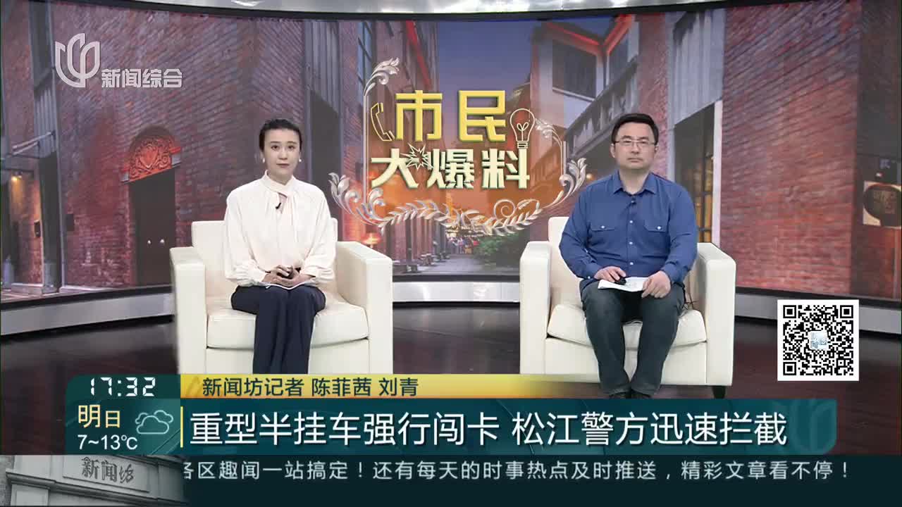 重型半挂车强行闯卡 松江警方迅速拦截