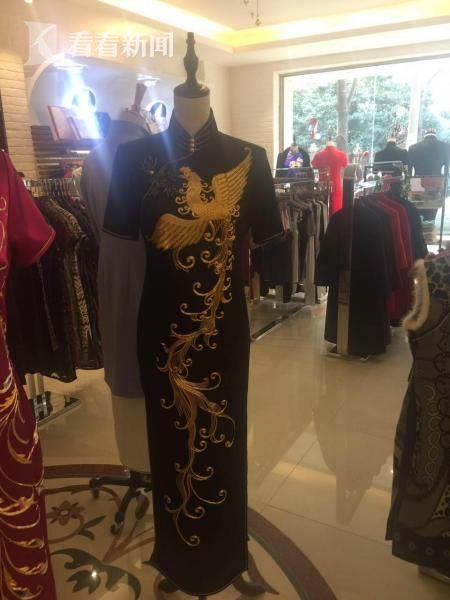 高女士过年前在嘉善路上一家服装店定制了这件手工绣花的斗篷,去拿衣服的那天,店员又向她推销了一件手工绣花旗袍。