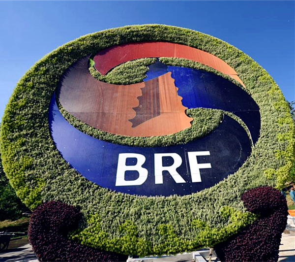 北京雁栖湖国际会议中心内“一带一路”国际合作高峰论坛的标志花坛。