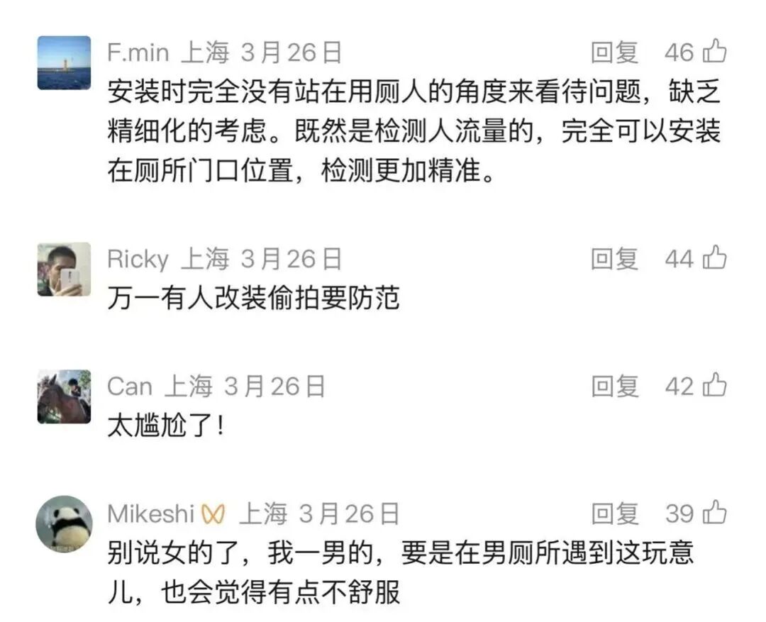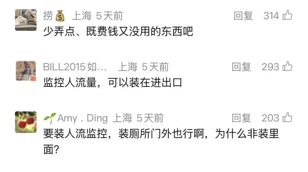 此前,在坊记采访时,公厕主管单位徐汇区市容卫生管理中心表示,后续他们会与设备供应商沟通,结合市民感受,对管理手势与安装位置进行调整。