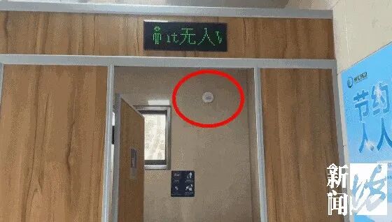 设备供应商介绍, 这款设备是利用"主动红外测距技术"来精准感知隔间内人员的如厕情况。起初,他们打算在门把手上安装传感器,但这种方案无法解决通电,受现实条件所限,才选择了现在的形式。