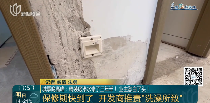 花270万的积蓄,没想到换来这样一套精装房,修了十几次却越修越糟。开发商每次维修都涂涂抹抹,却始终找不到真正的渗漏点,甚至推说是业主洗澡造成的,这种敷衍与推诿,是对消费者最基本的居住尊严的践踏。眼下保修期即将到期,希望抓紧时间解决问题,真正做到对症下药。