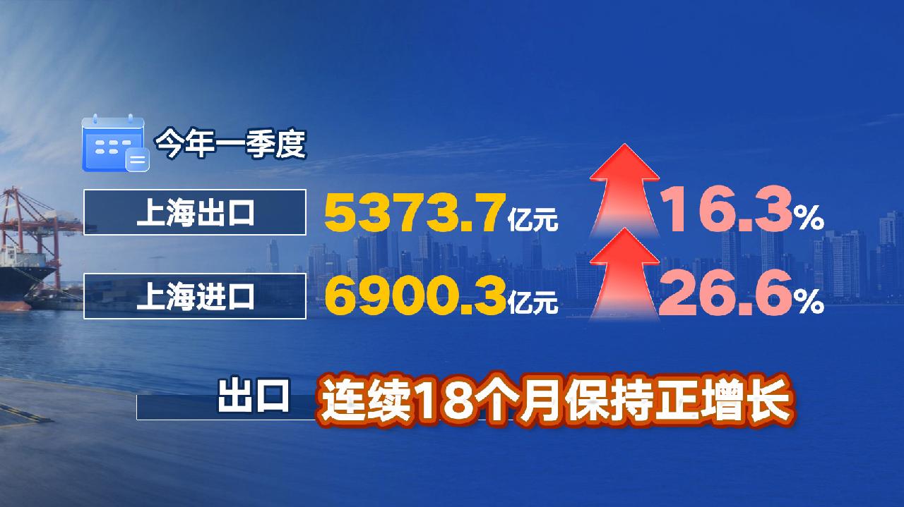分项看:一季度上海出口5373.7亿元、进口6900.3亿元,两端协同发力,分别增长16.3%和26.6%。更令人振奋的是,出口连续18个月保持正增长,在复杂多变的外部环境中,展现出强大的适应能力和稳健底盘。