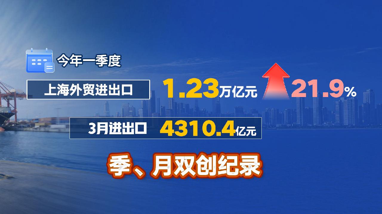 一季度,上海外贸进出口总值达1.23万亿元,同比增长21.9%。3月单月更是攀升至4310.4亿元,实现“季、月双创纪录”的强劲开局。
