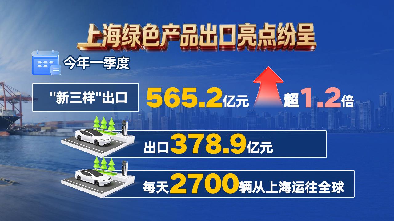 值得关注的是,目前国际能源价格波动剧烈,上海绿色产品出口亮点纷呈。上海海关相关负责人表示:这恰恰体现了新能源产业的战略价值。凭借深厚的产业基础,上海“新三样”产品持续领跑,一季度出口565.2亿元,增长超1.2倍。