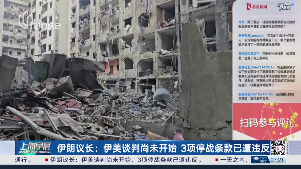 伊朗议长:伊美谈判尚未开始 3项停战条款已遭违反