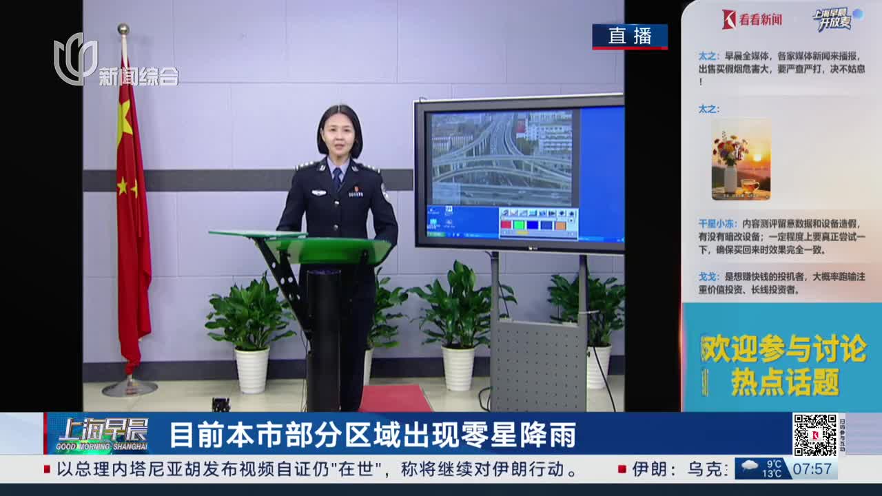 交通连线:目前本市部分区域出现零星降雨 提醒机动车驾驶人近期路况复杂多变 途遇降雨路段时牢记降速 控距 亮尾