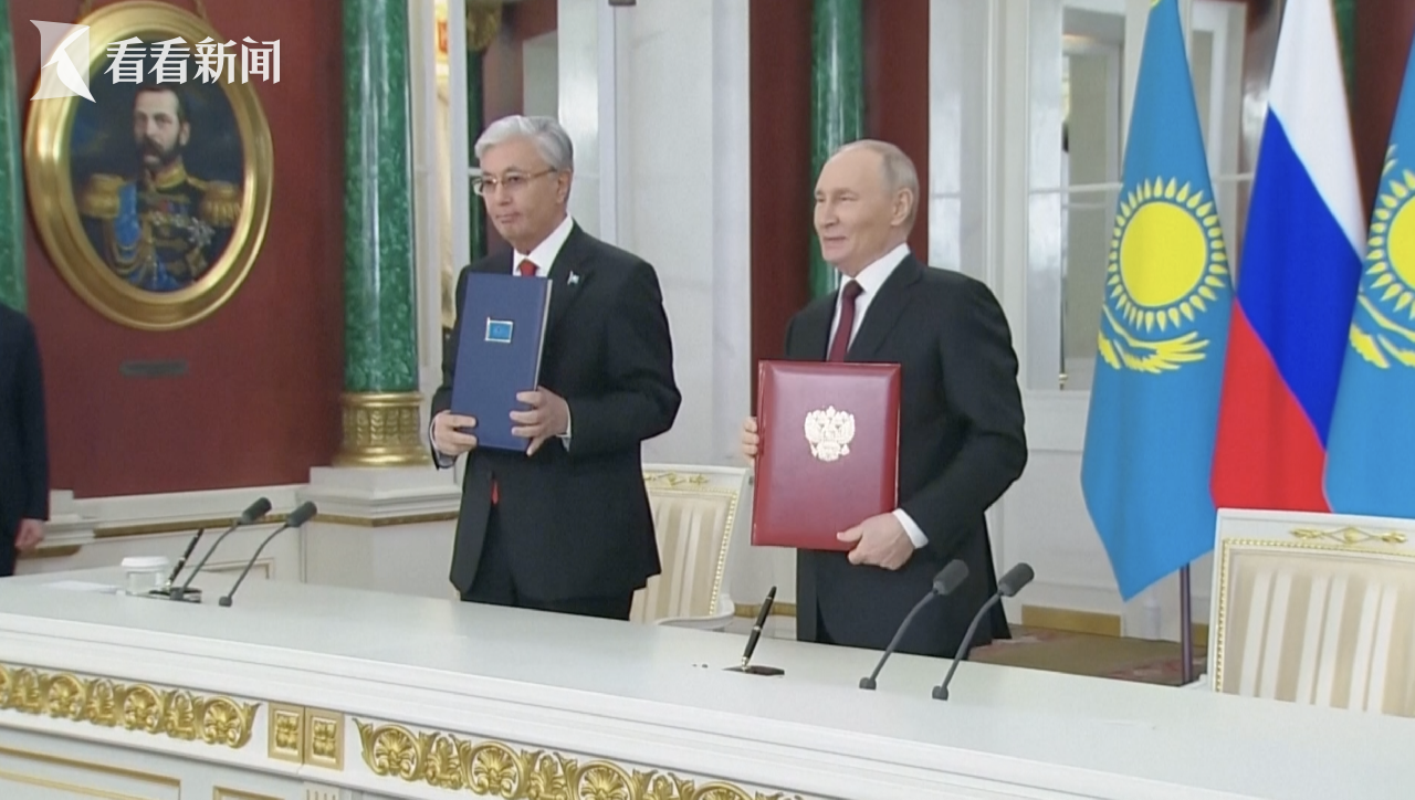 当地时间11月12日,俄罗斯总统普京同对俄进行国事访问的哈萨克斯坦总统托卡耶夫举行会谈并签署一份宣言,将双边关系提升至全面战略伙伴和联盟水平。
