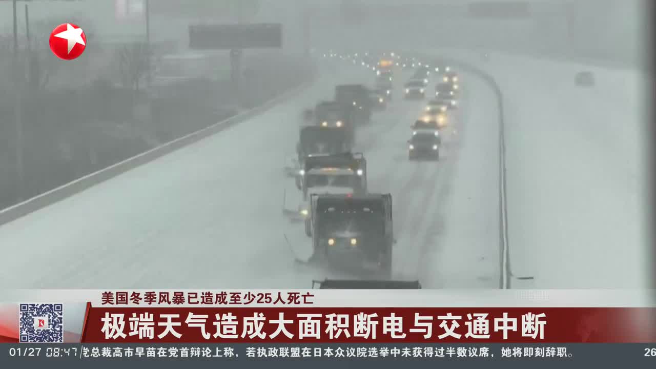 美国冬季风暴已造成至少25人死亡 极端天气造成大面积断电与交通中断