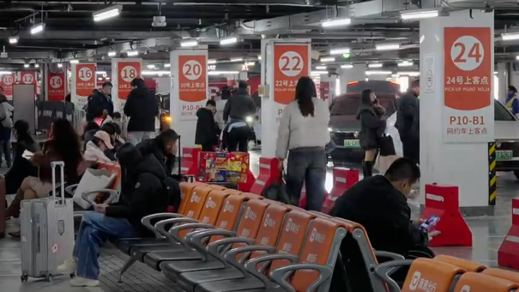 为应对返程客流高峰,虹桥枢纽网约车上客点在加强管理的同时,也进行了优化,将候车区域调整到了中间,从入口开始就实现人车分流,同时,还划分出网约车专用停靠区,不再与社会车辆停车混合。