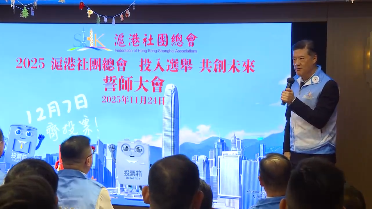 为全力支持特区政府立法会换届选举,11月24日下午,沪港社团总会在中环“上海总会”申缘会所,隆重举办“2025沪港社团总会‘投入选举 共创未来’誓师大会暨立法会候选人见面会”。 这场活动汇聚社团力量,彰显爱国爱港情怀,为12月7日举行的立法会换届选举注入强大底气,盛会吸引逾百名总会成员及嘉宾参与,气氛热烈、气势澎湃,且意义深远。