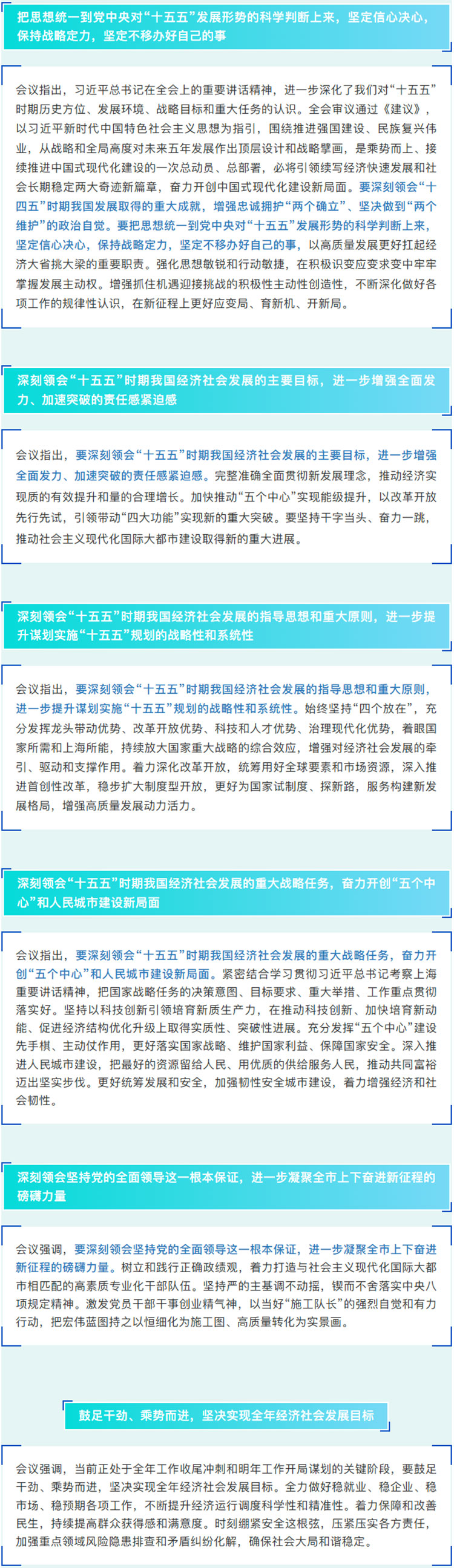市委常委会今天(10月24日)举行扩大会议,传达学习党的二十届四中全会精神和习近平总书记在全会上的重要讲话精神。市委书记陈吉宁主持会议并讲话强调,全市上下要把学习好贯彻好党的二十届四中全会精神作为当前和今后一个时期的重大政治任务,全力抓好今年和“十四五”圆满收官,全力谋划好“十五五”和明年开局,为国担当、勇为尖兵,加快建成具有世界影响力的社会主义现代化国际大都市,在推进中国式现代化中充分发挥龙头带动和示范引领作用。