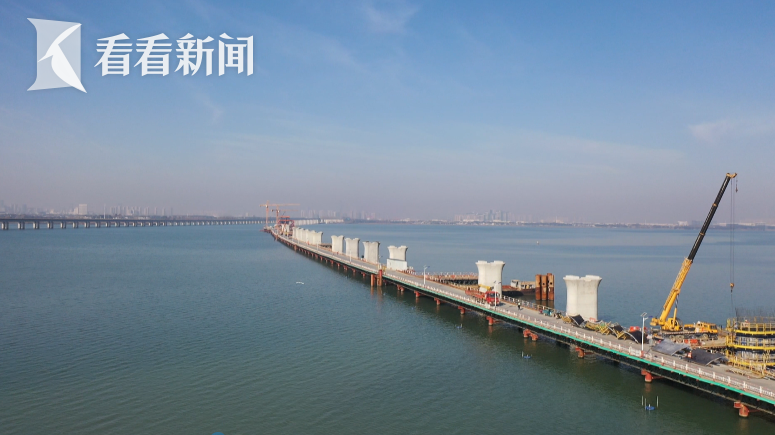 作为我国“八纵八横”高铁网沿海通道的重要组成部分,通苏嘉甬高铁阳澄湖段施工正如火如荼进行。记者在现场看到,一座座跨湖桥墩已陆续立起,这条高铁的“水上通道”也初具雏形。