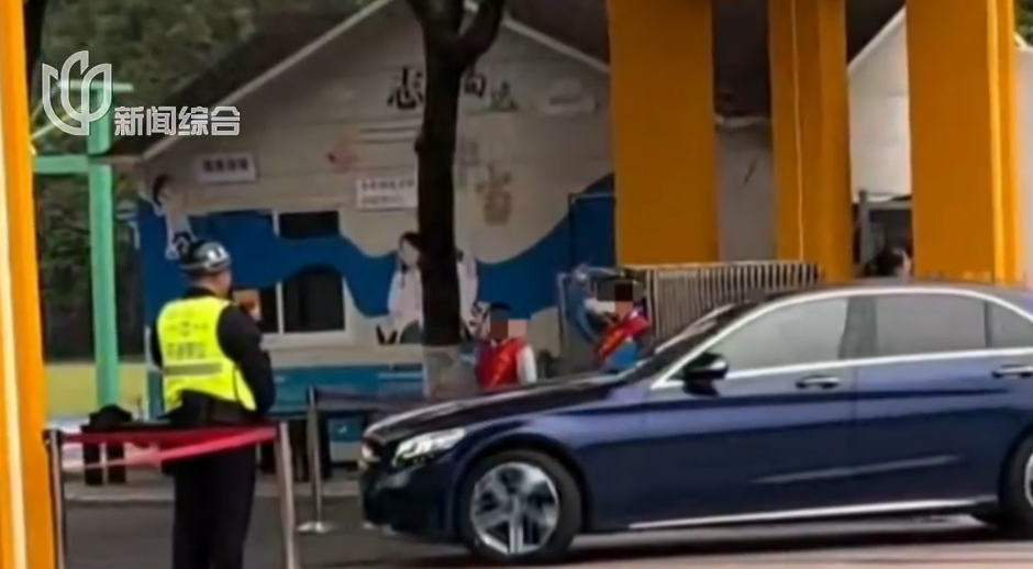 视频中,执勤的学生在校门口列队,向驶入校园的教师车辆敬礼,并喊“老师好”,约50秒的时间中,有10辆车经过,学生问候了十多次,但却没有看见车辆停留或者老师回应的画面。
