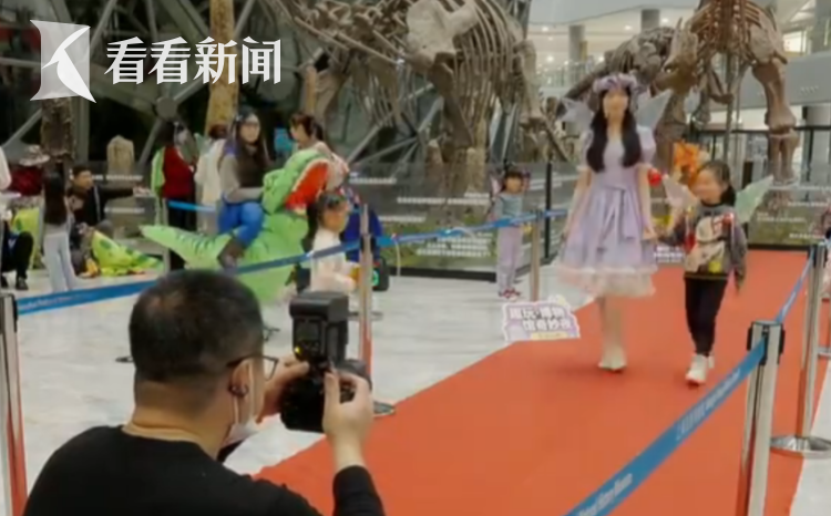在生命长河沉浸剧场,孩子们在巨兽骨架下开启完美夜晚。从一角鲸,到山魈,专业演员们根据场景挑选了四个有代表性的动物进行表演互动。