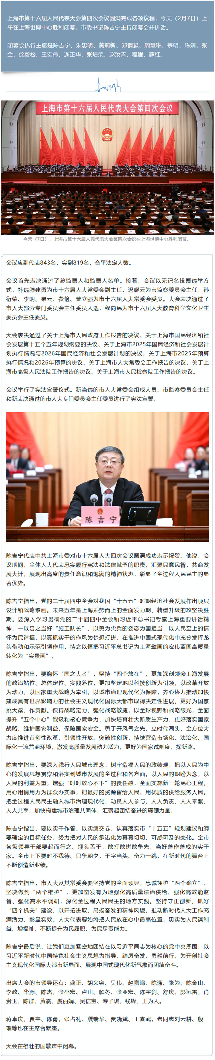 上海市第十六届人民代表大会第四次会议闭幕,陈吉宁主持并讲话