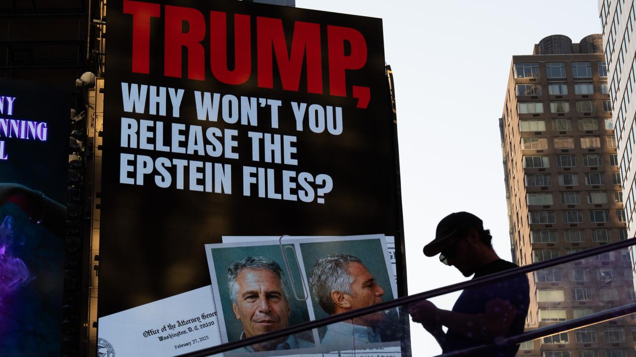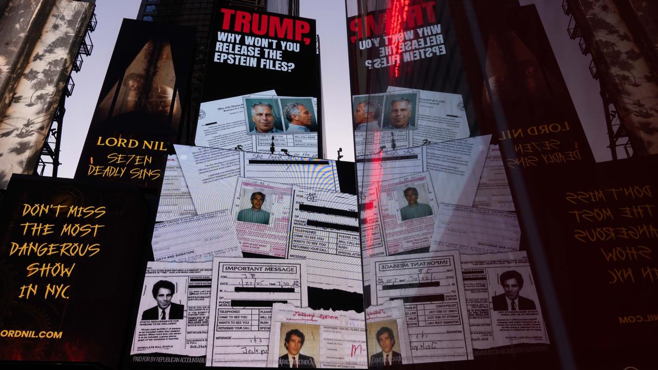 美国纽约时报广场广告牌呼吁公开爱泼斯坦案所有文件