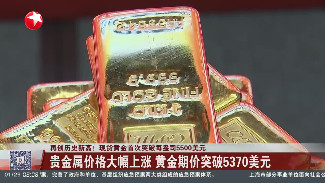 1月29日早盘,现货黄金延续此前涨势,开盘直线拉升,并快速突破5500美元/盎司关口。本周金价从略低于5000美元的水平一路狂飙,连破6道整百关口。