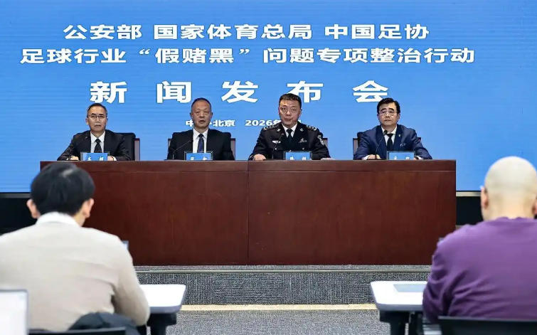 1月29日上午,国家体育总局、公安部、中国足协联合召开新闻发布会,通报足球行业假赌黑问题专项整治行动阶段性成果。13家涉案俱乐部被扣除2026赛季职业联赛积分并处以罚款,陈戌源、李铁等73名昔日足坛“显赫人物”被终身禁足。