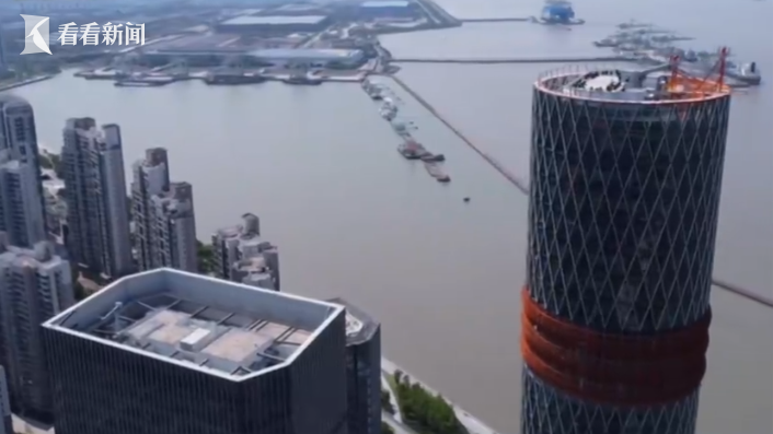 记者:我现在在长滩观光塔的顶楼180米高处,实在是太刺激了,沿着凌云步道内外圈约90米可以俯瞰长江入海口,宝山城区远眺可达陆家嘴三件套,壮观景象尽收眼底。