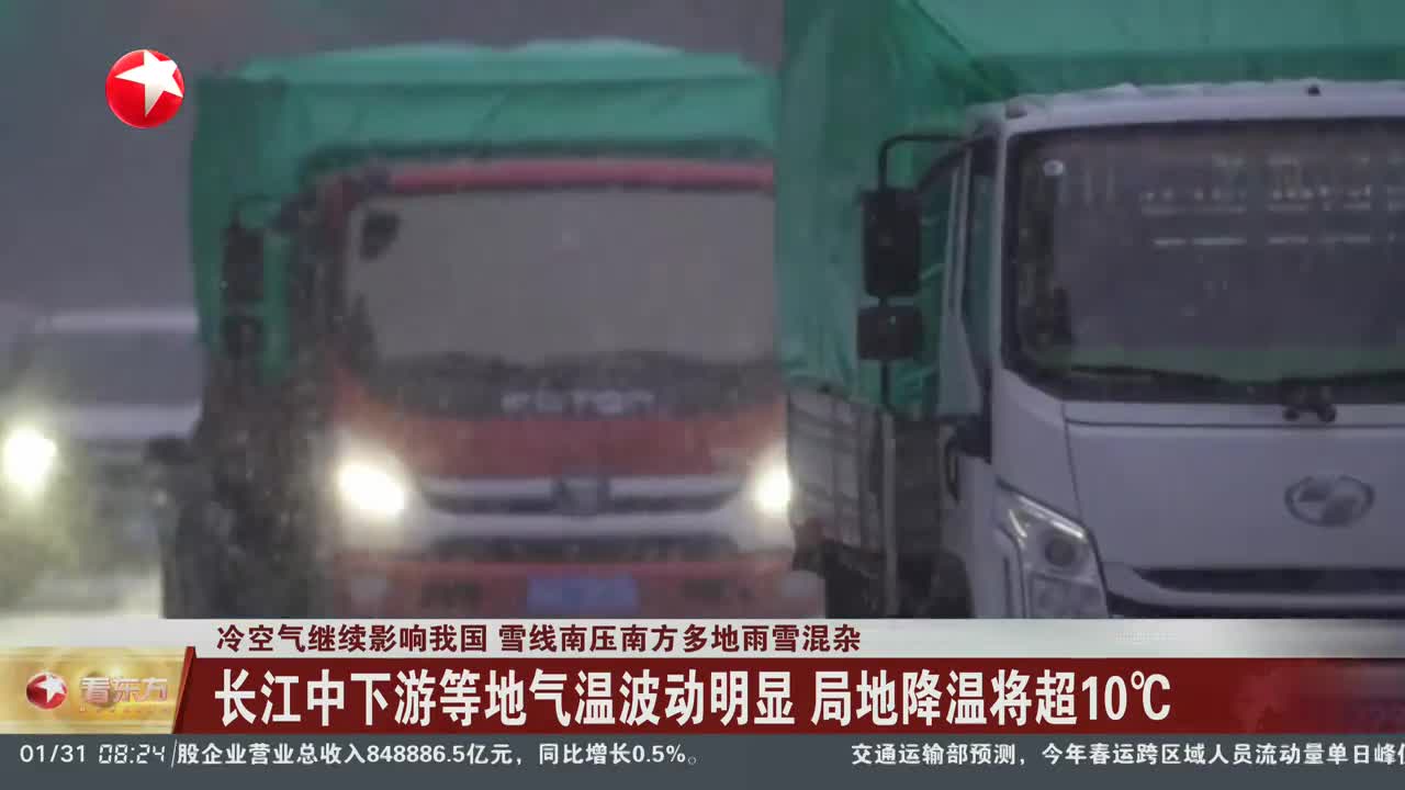 冷空气继续影响我国 雪线南压南方多地雨雪混杂 长江中下游等地气温波动明显 局地降温将超10°C