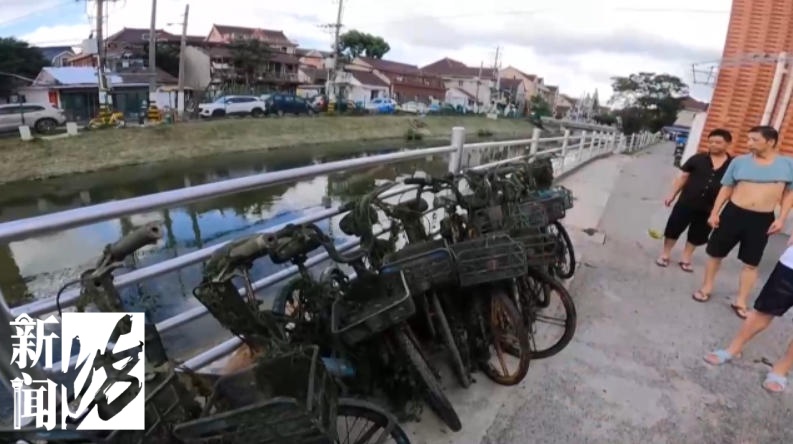 今年7月底,我们根据公司后台软件显示,这个地方有很多单车,它的定位信号异常消失了,于是我们到现场去寻找,发现这个地方是一条河,现场并没有找到车子。根据我们以往工作经验来推断,应该是这些车子被人扔到河里边了。所以我们就开始进行打捞,大概10辆应该是有的。