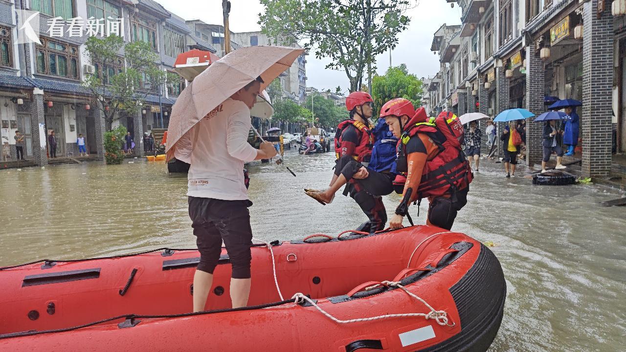 10时,石壁镇洋村一名老人被困。消防救援人员到达现场后了解到,漫水路段深约1.5米、长约50米,借助现场群众渔船将被困老人转移。