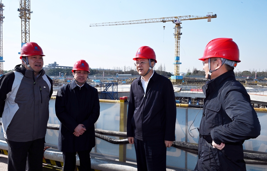 调研期间,陈吉宁、龚正还来到东方枢纽上海东站施工现场,察看主体站房、站前区建设进展,听取上海东站整体建设工作推进情况汇报。目前上海东站场站区地下工程主体结构已完工,地上工程正在紧锣密鼓建设中。市领导详细了解设计理念、技术应用、工程节点、运营模式等,向持续奋战一线的广大建设者表示感谢和慰问,叮嘱相关负责同志要锚定打造世纪工程、标杆工程目标任务,突出以人为本、突出绿色智慧、突出安全韧性,高质量建设好东方枢纽上海东站。要坚守安全底线,坚持精雕细琢,在工程建设的标准、品质上下更大功夫,以过硬队伍、过硬质量确保工程项目经得起历史检验。要深化路地协同,创新一体化运营模式,加强区域空间衔接、功能协同、设施配套,更好为上海“五个中心”和现代化建设提供有力支撑。