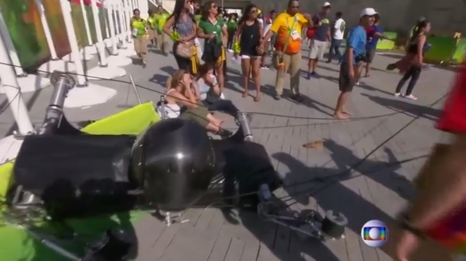 巴西环球电视台一名记者刚好拍摄到了摄像机坠落时的情景。画面中可以看到,摄像机与多根钢缆线相连,悬挂于高空中,位置距离奥运篮球馆不远,其下方是公园的自由通行区。