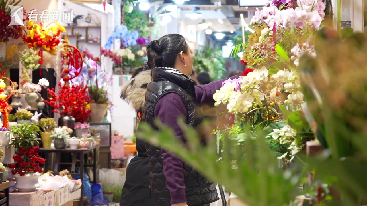 虹桥古玩城鲜花批发市场管理人周昭艮介绍:“春节主要以年宵花为主,比如冬青、郁金香、蝴蝶兰、蕙兰等,一天的l销售量大概在5吨以上,基本上都是每天到货每天销完的。”