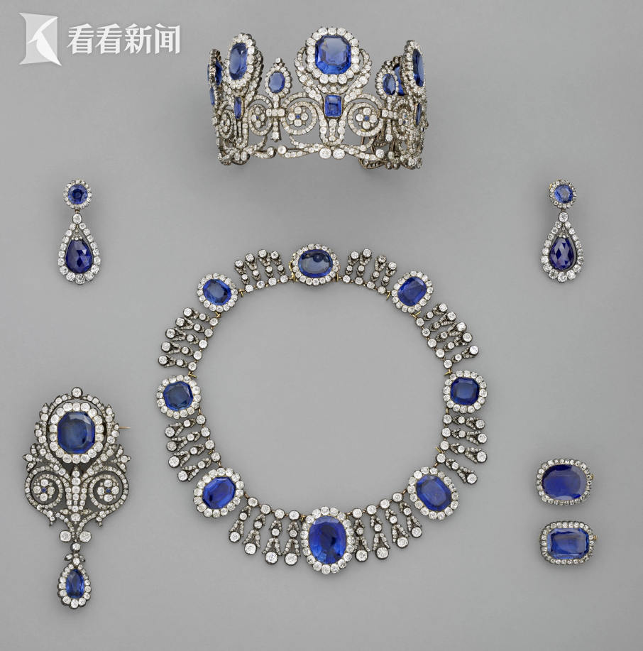 玛丽-阿梅莉王后与奥尔唐斯王后的冠冕、蓝宝石项链及耳环
