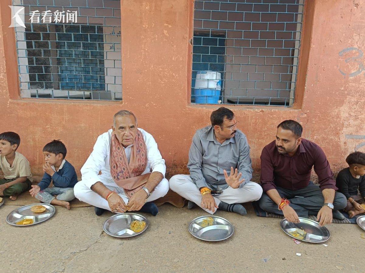 近日,一段视频在社交媒体疯传。视频称,印度中央邦一所小学的学生蹲坐在墙边,吃盛在旧报纸上的午饭。