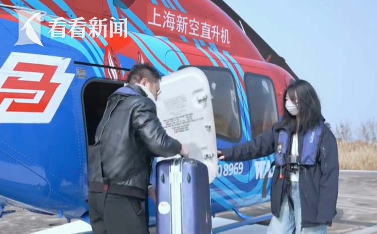 一同乘机的刘女士,是在上海市中心工作的白领。通过订票小程序,抢到了早鸟票,票价为1580元。这次旅程有效避开了地面和港口的春运拥堵,给自己来了一场“说走就走”的团圆方案。半小时以后,直升机缓缓降落。