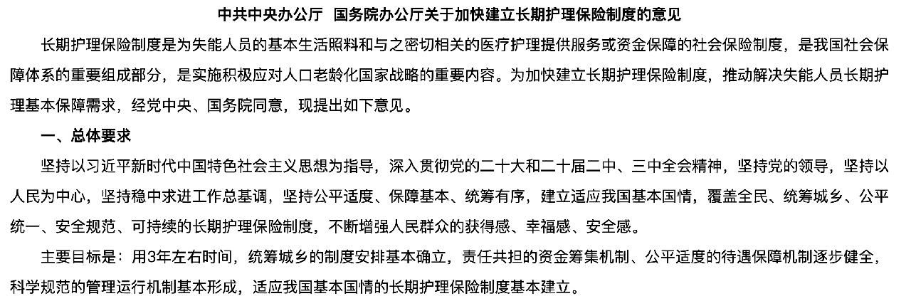 昨天,中共中央办公厅、国务院办公厅发布《关于加快建立长期护理保险制度的意见》,要求用三年左右时间,基本建立适应我国国情的长期护理保险制度,这标志着长护险从局部试点转向全国推广。