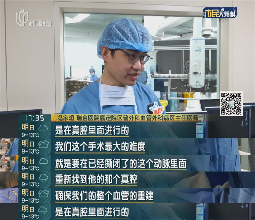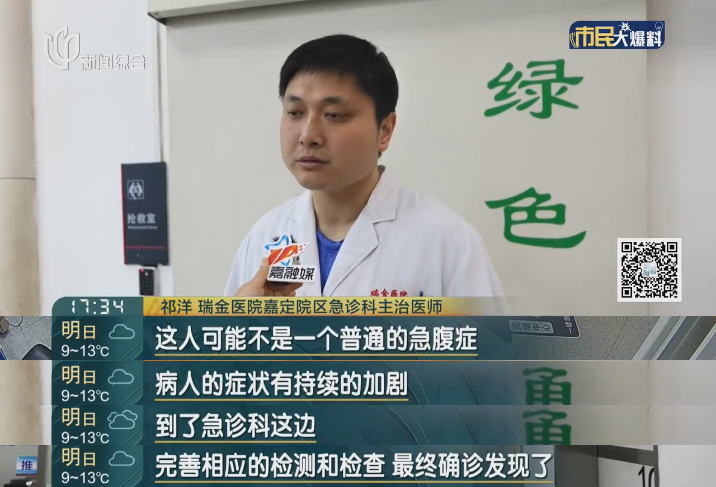 医生介绍,肠系膜上动脉夹层就是给肠道供血的"生命通道"被撕裂鼓出 “假口袋”,把真血管给压扁了,当时患者已休克,晚一步肠道就坏死!