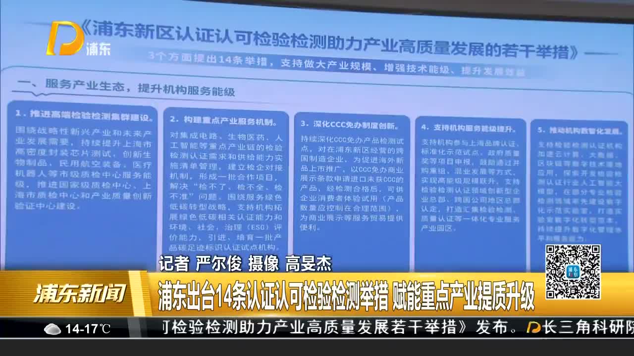 浦东出台14条认证认可检验检测举措 赋能重点产业提质升级