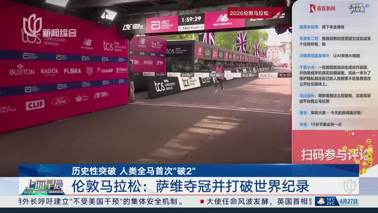 历史性突破 人类全马首次“破2” 伦敦马拉松:萨维夺冠并打破世界纪录