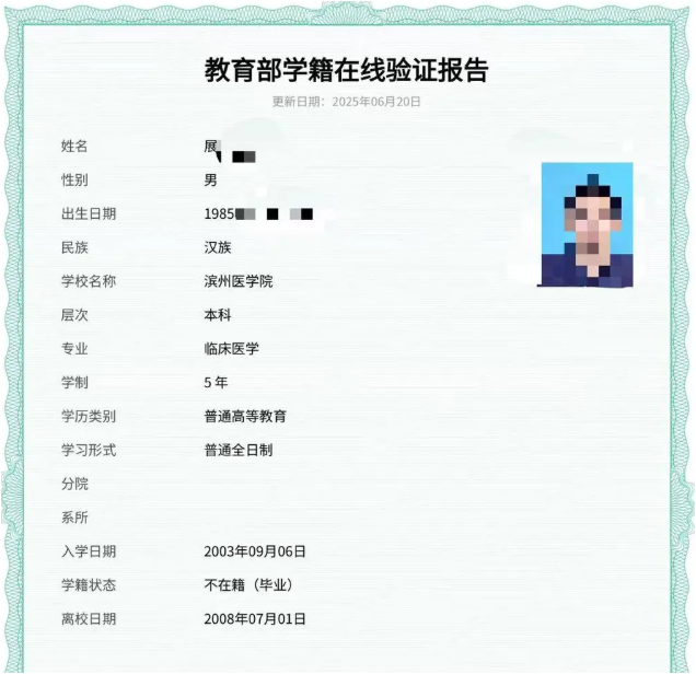 此后16年间,展先生凭借该学位证先后就职于蓬莱中医医院、广东省中医院珠海医院、东莞市石排医院,担任外科、神经外科医生,学位证在求职、入职等环节均审核通过。直到去年7月,因单位考试报名登录学信网时,他才发现自己的学位证信息无法查询,证书效力遭到质疑。
