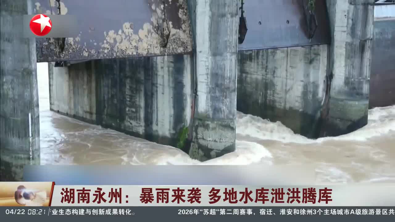 湖南永州:暴雨来袭 多地水库泄洪腾库