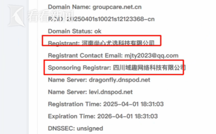该网址的后缀系中国国家代码顶级域名,并非新西兰网站,域名系2025年4月1日注册,注册人是河南郑州的一家公司。当记者亮明身份采访后,该域名被迅速关闭。