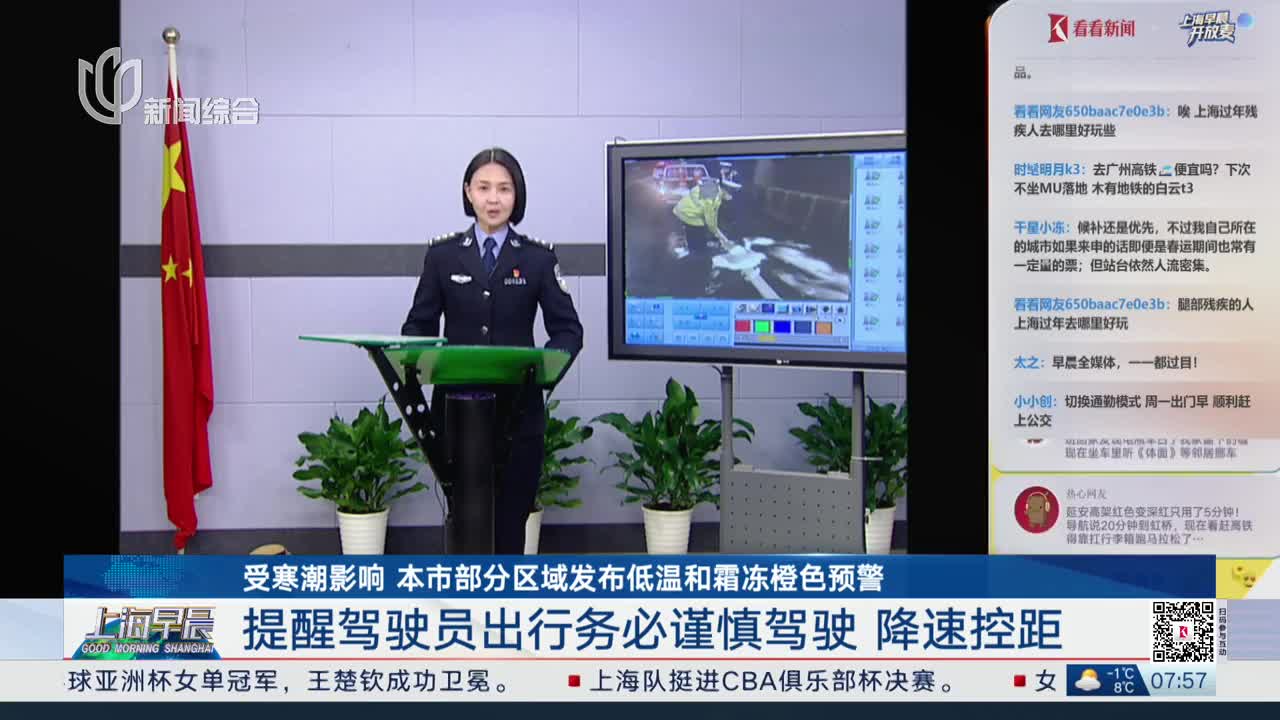 交通连线:受寒潮影响 本市部分区域发布低温和霜冻橙色预警 提醒驾驶员出行务必谨慎驾驶 降速控距