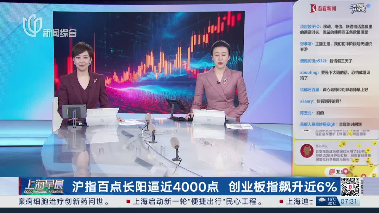 沪指百点长阳逼近4000点 创业板指飙升近6%